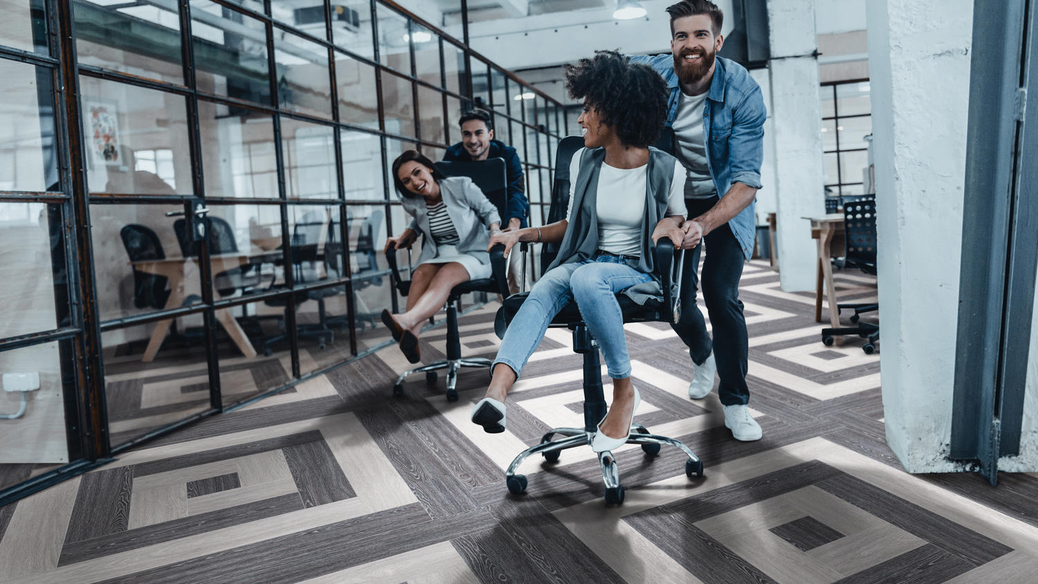 - Модули имеют точные размеры и форму, пол выглядит единым бесшовным массивом